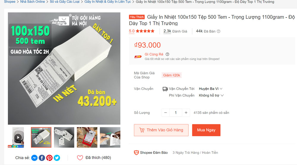 Giấy in nhiệt Tuigoihang.vn luôn là dòng giấy top 1 bán chạy tại Shopee