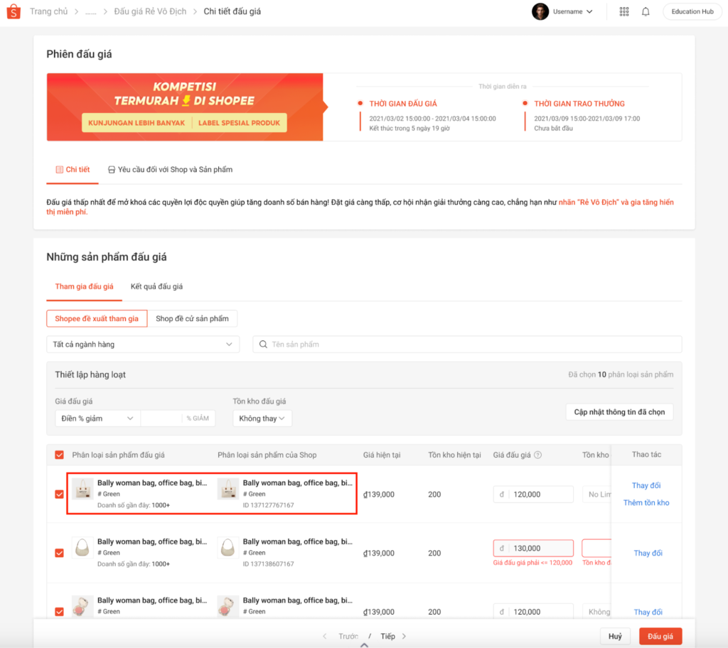 2. Hướng dẫn nhà bán hàng tham gia chương trình đấu giá rẻ vô địch Shopee