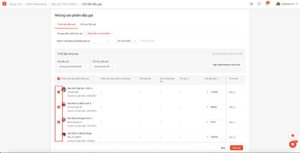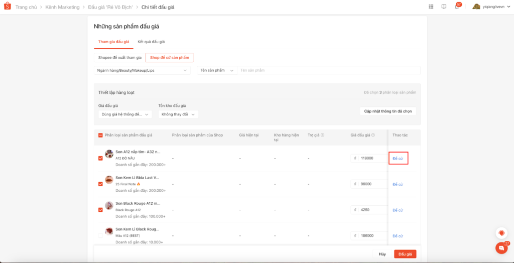 Bước 3: Ở mục Tham gia đấu giá, chọn Shopee đề xuất tham gia