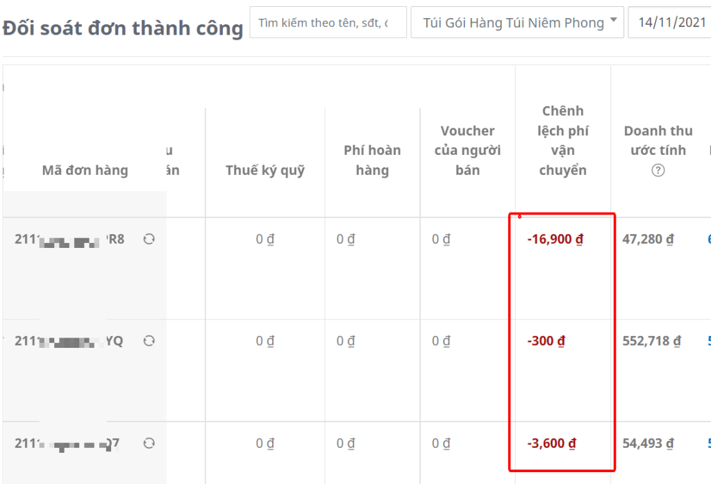 Phần chênh lệch này sẽ bị Shopee khấu trừ trực tiếp vào doanh thu đơn hàng khi đơn thành công. Điều đáng nói ở đây phát sinh lệch phí chỉ hiển thị khi đơn hàng đã giao thành công. Vì thế rất nhiều nhà bán hàng không check tới dẫn đến khấu trừ rất nhiều vào doanh thu.