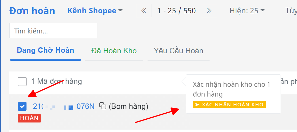 - Đã hoàn kho: là các đơn hãng đã chuyển sang trạng thái Đã hoàn hàng và phía shop đã thao tác xác nhận Đã nhận được đơn hoàn.