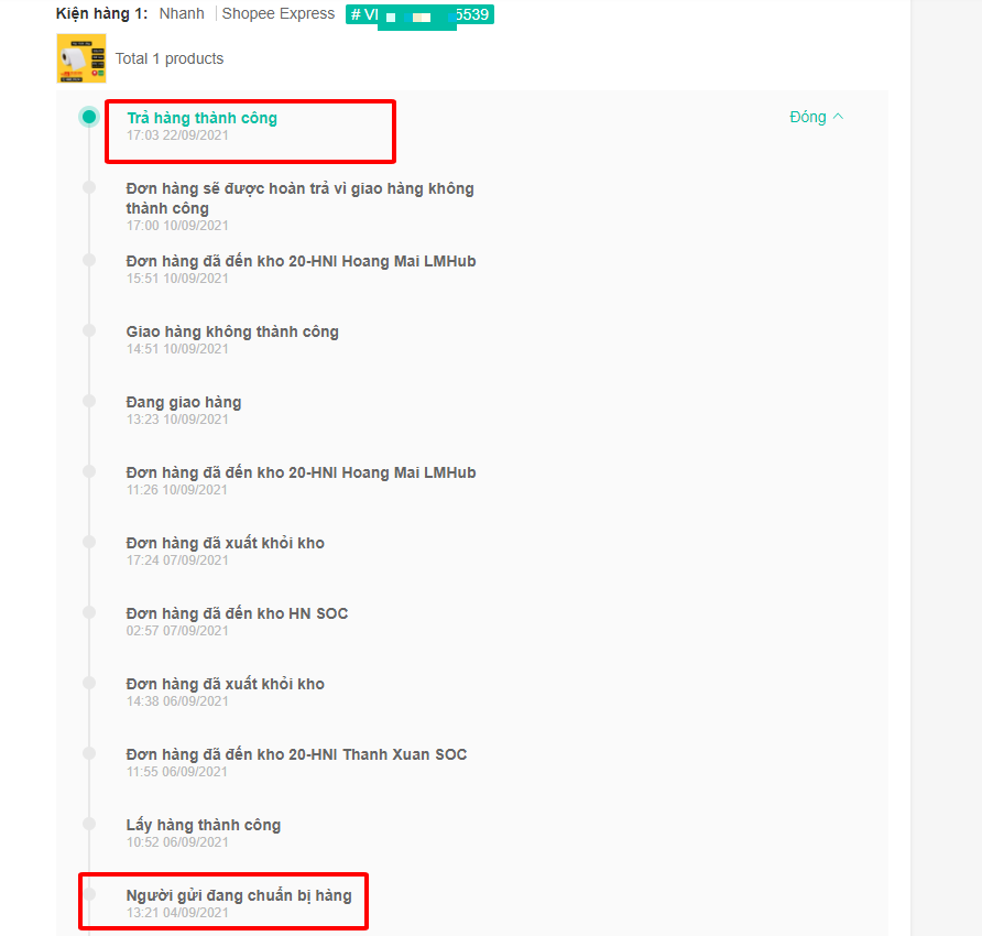 Đơn hàng gửi đi từ ngày 4.9, theo dự kiến giao khoảng 2-3 ngày nhưng 18 ngày sau đơn mới hoàn về tới kho