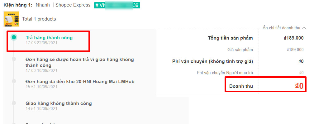 Doanh thu đơn hoàn = 0 tức là không mất phí, nếu doanh thu đơn hàng là giá trị âm tức là shop bị khấu trừ khoản tiền đó cho đơn hoàn
