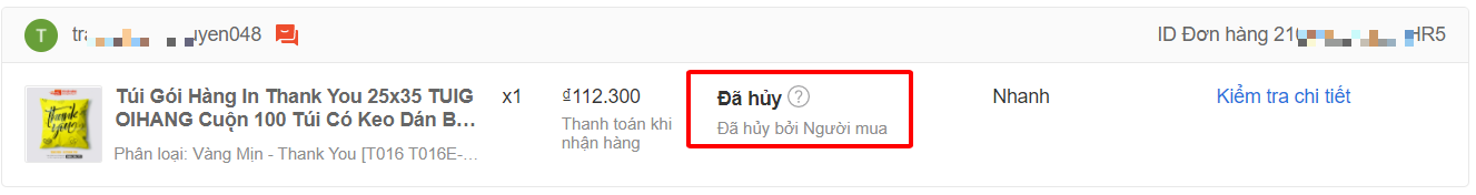 Ngay dưới trạng thái Đã hủy sẽ có dòng mô tả lý do hủy đơn. Ý nghĩa của trạng thái Đã hủy theo từng lý do cụ thể là: