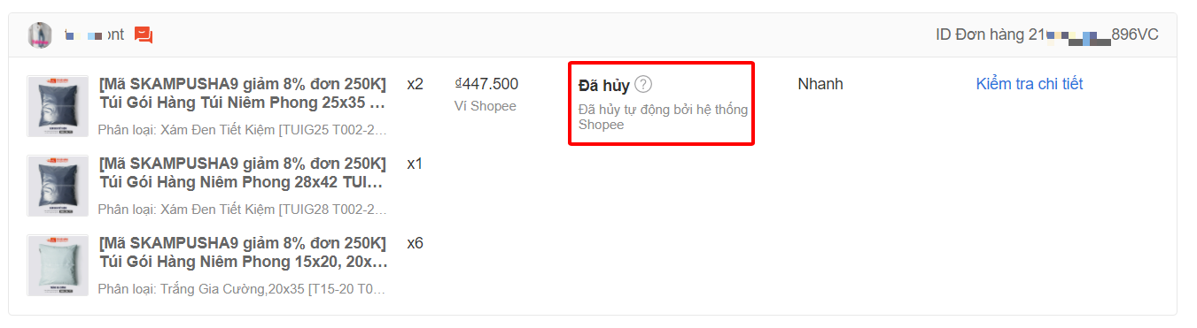 Đã hủy tự động bởi Shopee:
