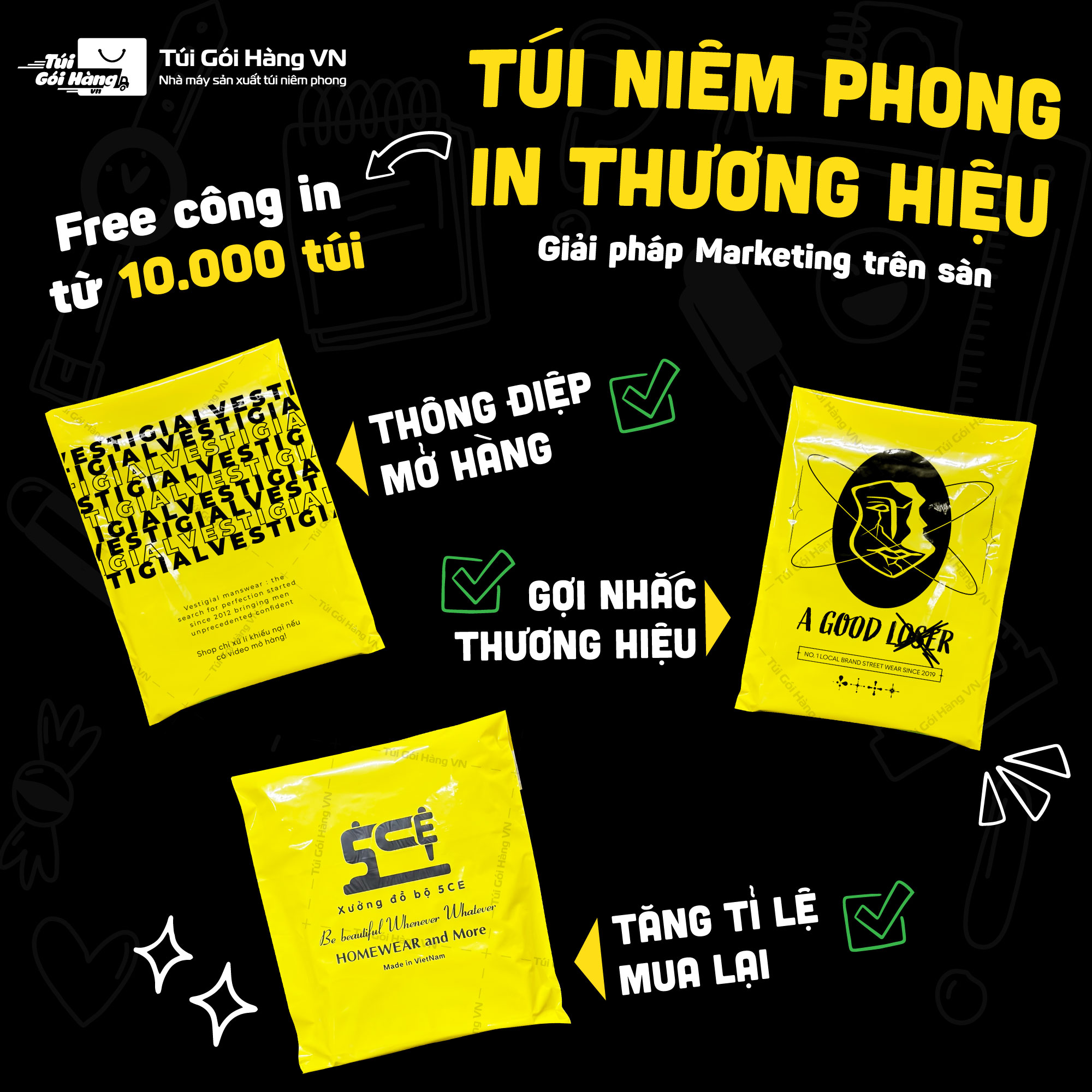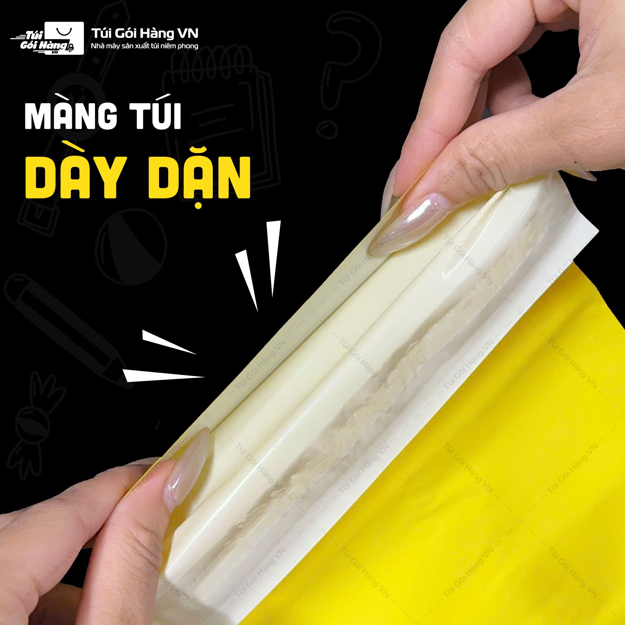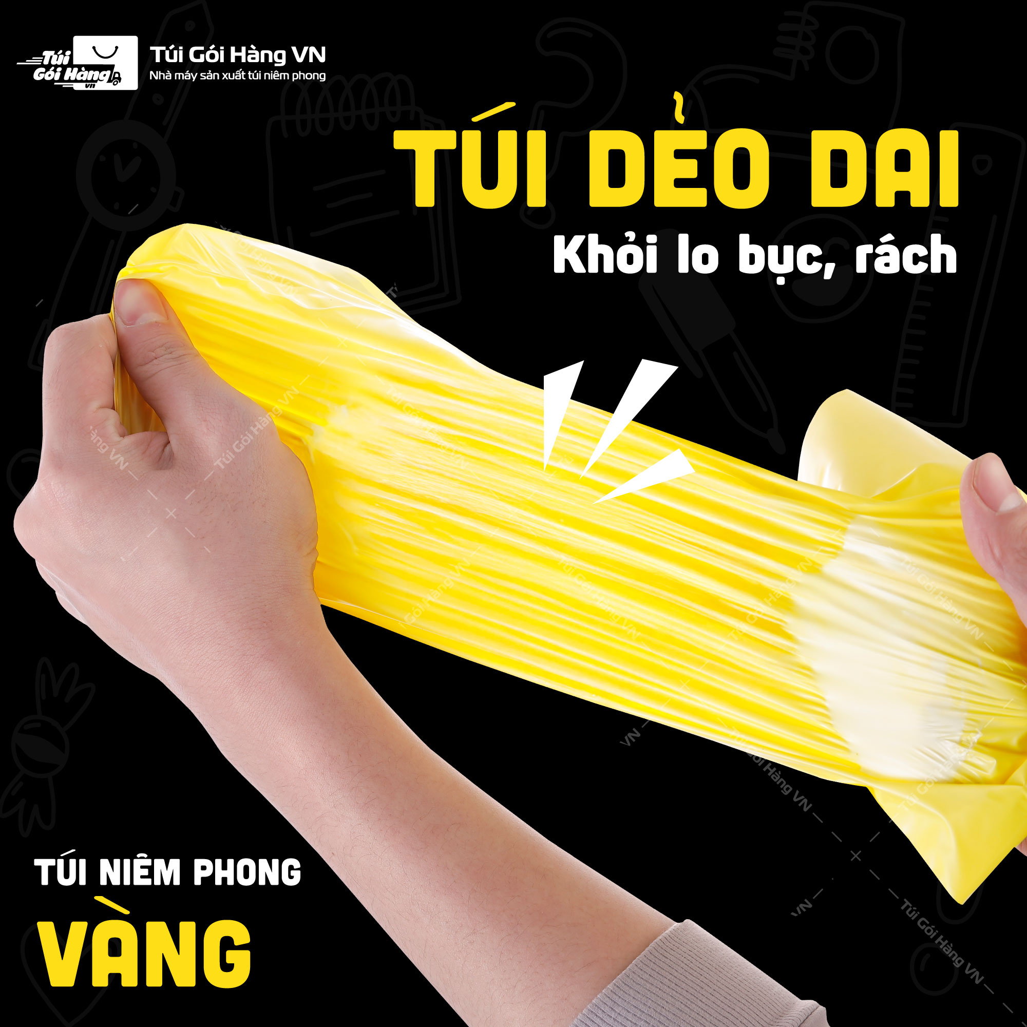 Trong lĩnh vực thương mại điện tử, bao bì không chỉ là lớp vỏ bảo vệ hàng hóa mà còn là công cụ để tạo ấn tượng thương hiệu. Túi niêm phong vàng từ Túi Gói Hàng VN thuộc phân khúc cao cấp, làm từ nhựa PE nguyên sinh, cấu tạo 3 lớp dày dặn, bề mặt bóng mịn cùng gam màu vàng rực rỡ, nổi bật.