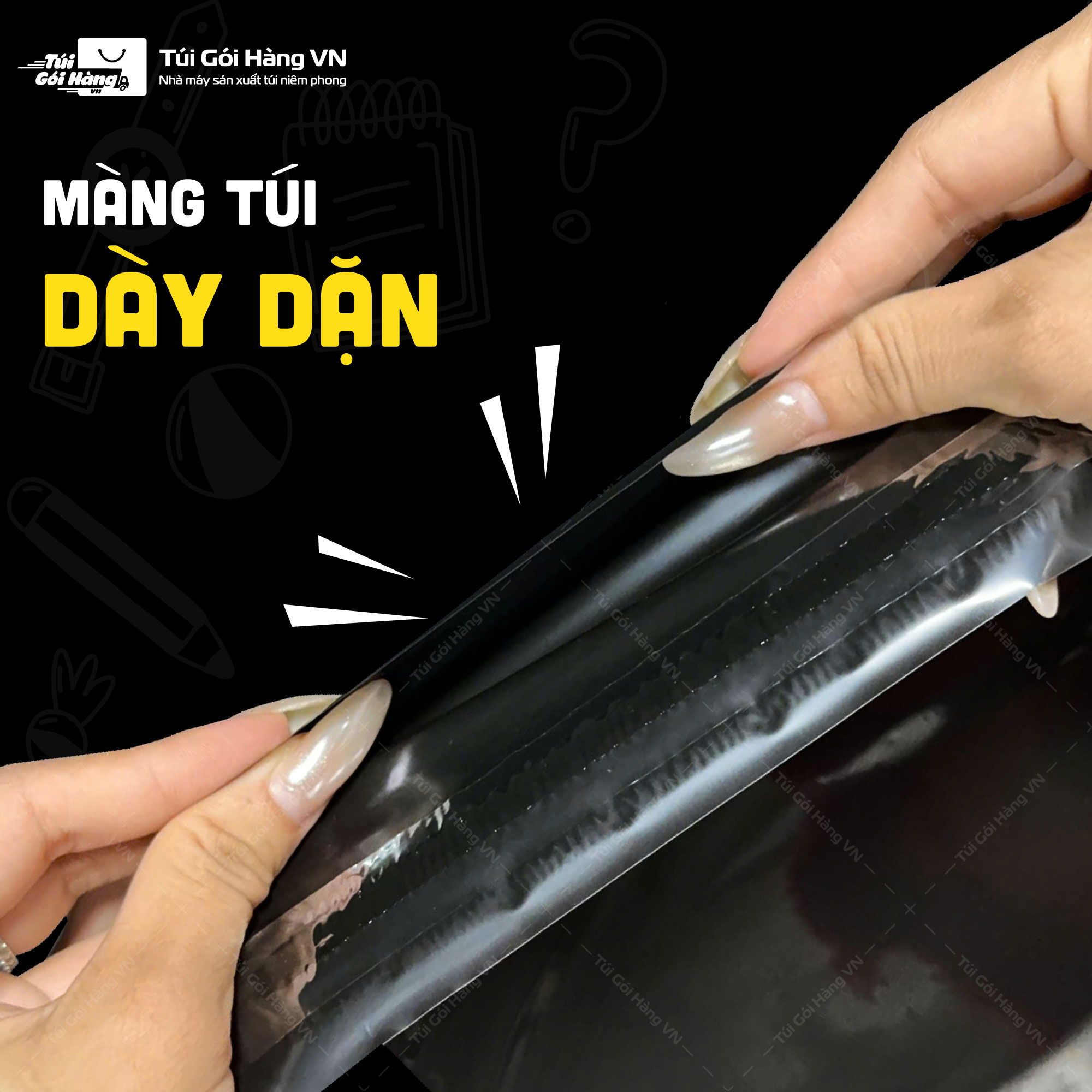 Trong kinh doanh online, bao bì là công cụ quan trọng để vừa bảo vệ sản phẩm, vừa ghi dấu ấn thương hiệu. Túi niêm phong Đen Sứ Plus đến từ Túi Gói Hàng VN thuộc dòng cao cấp, được sản xuất từ nhựa PE nguyên sinh, với 3 lớp dày dặn, bề mặt bóng mịn và màu đen sứ sang trọng.
