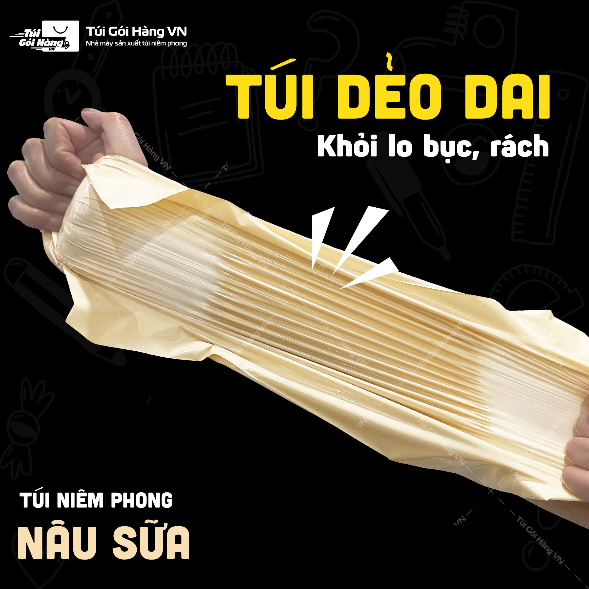 Trong thương mại điện tử, bao bì không chỉ để bảo vệ hàng hóa mà còn là “đại sứ thương hiệu” trên từng đơn hàng. Túi niêm phong nâu sữa từ Túi Gói Hàng VN được sản xuất từ nhựa PE nguyên sinh cao cấp, với bề mặt bóng mịn, sắc nâu sữa sang trọng, hiện đại.