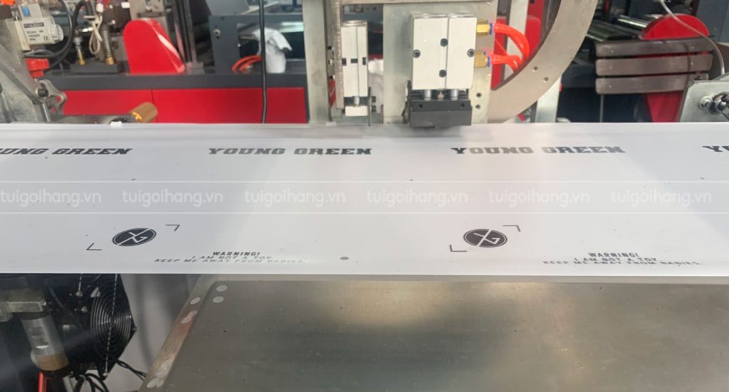 Nếu chỉ là túi trơn đơn thuần thì sau công đoạn cán màng sẽ đến ngay công đoạn hàn dây zip vào màng CPE, tuy nhiên, đối với màng túi zip lụa mờ in thương hiệu thì cần tiến hành bước in ấn trước đó.