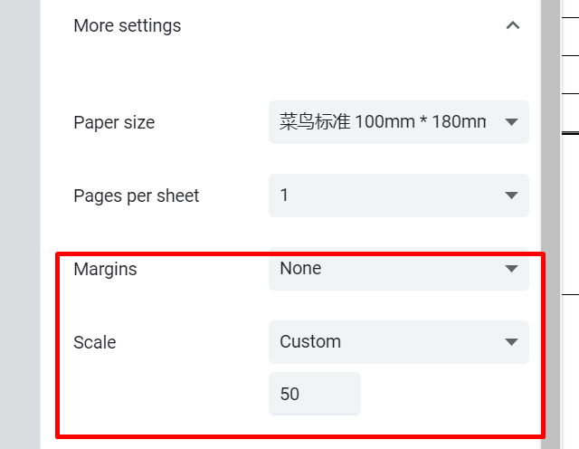 Nếu thông tin in ra không full 1 tờ, Quý vị xem lại khổ giấy in khuyến nghị cho kênh đang in ấn là khổ nào, có phù hợp với khổ giấy Quý vị đang tạo không? Thông thường khổ in chuẩn với in đơn sàn TMĐT là giấy in nhiệt 10×15. Tuy nhiên một vài kênh khác sẽ dùng khổ 10×18 hoặc 10×20. Như vậy nếu 10×18 in vào bill 10×15 sẽ thiếu thông tin phía dưới.Bên cạnh đó, khi đặt lệnh in, Quý vị có thể tùy chỉnh thêm ở trường Margin (lề) và Scale (Tỷ lệ). Chỉnh lề càng nhỏ sẽ giúp nội dung in càng full. Nếu nội dung quá lớn thì có thể chỉnh Scale nhỏ đi để nội dung vừa khéo.