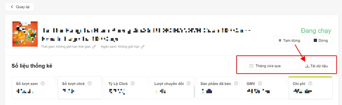 Bước 1: Truy cập trang quảng cáo Shopee, chọn quảng cáo muốn xuất Excel.