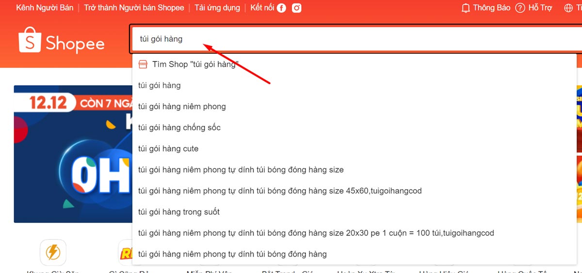 - Một, sử dụng chính “thanh tìm kiếm trên App hoặc web Shopee” bởi khi người mua gõ từ khóa, Shopee sẽ đề xuất các từ khóa gần đúng. Các nhà bán hàng sẽ tận dụng luôn các từ khóa này để chạy quảng cáo.