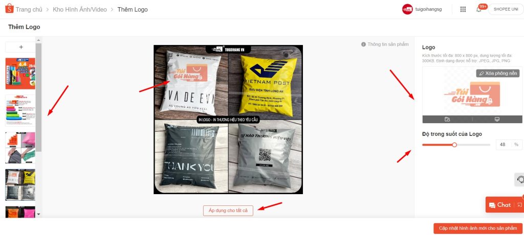 Thao tác thêm logo cho hàng loạt hình ảnh/ sản phẩm trên Shopee như sau: