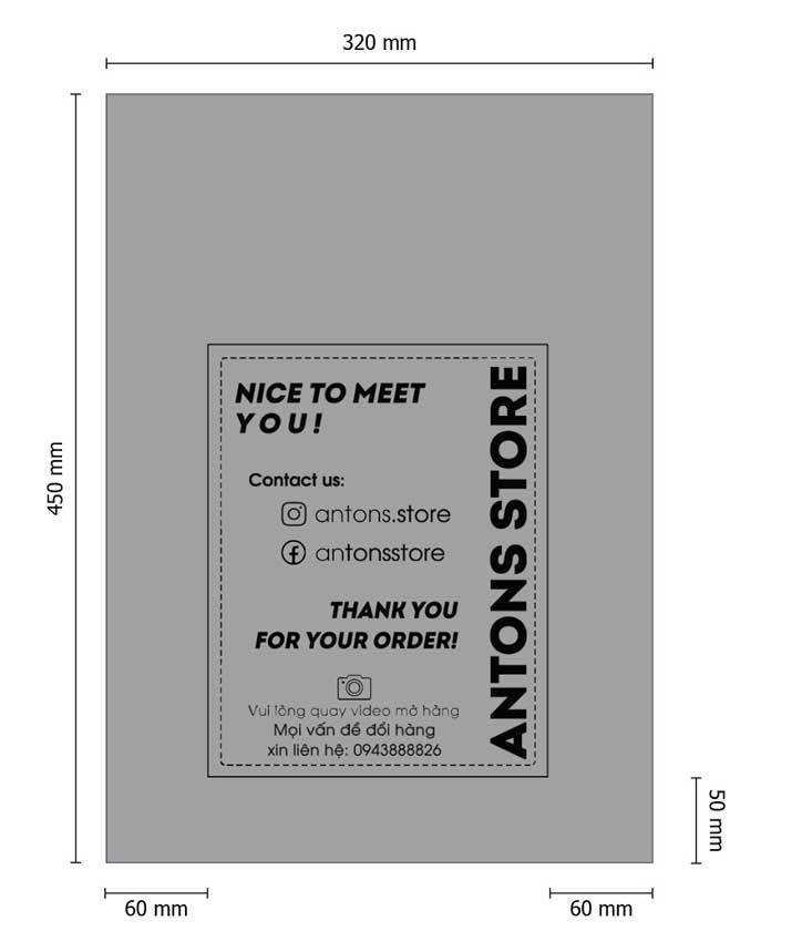 Thương hiệu Antons Store đã lựa chọn in thương hiệu túi đóng hàng bạc với thiết kế nổi bật.