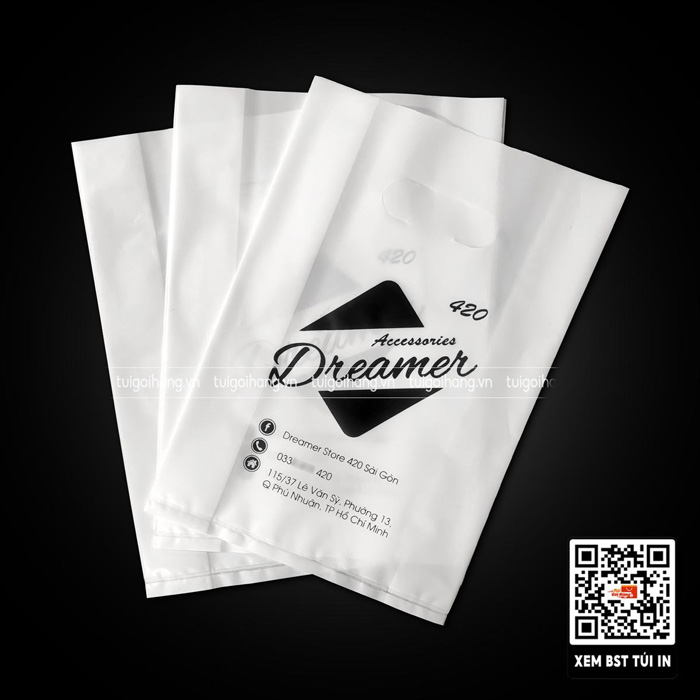 Với sản phẩm kinh doanh là phụ kiện thuốc lào, Dreamer đã lựa chọn cho thương hiệu của mình một chiếc túi in hột xoài trắng trên là mực đen với thiết kế đơn giản nhưng lại cực kì ấn tượng nổi bật, cùng size túi 20*30, đây cũng là size túi rất phù hợp cho các sản phẩm nhỏ xinh mà shop kinh doanh.